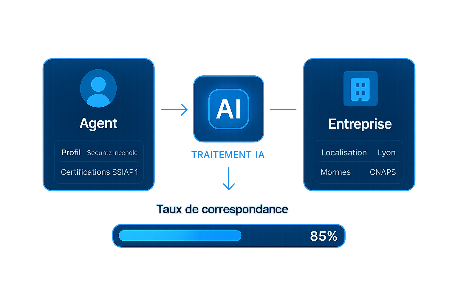 Notre intelligence artificielle analyse vos compétences, votre localisation et vos disponibilités pour vous proposer automatiquement les meilleures missions ou candidatures.